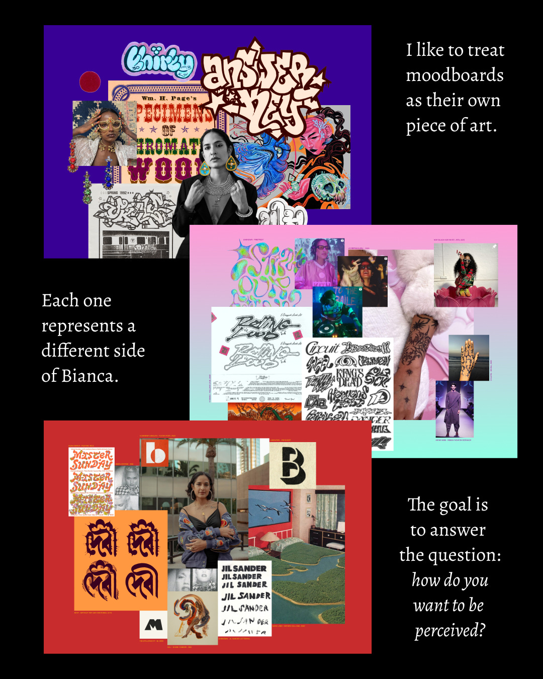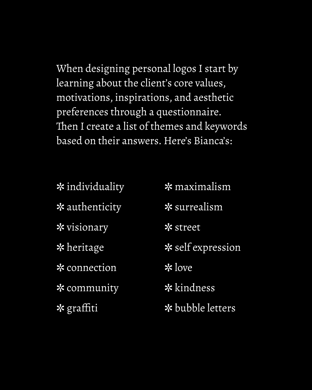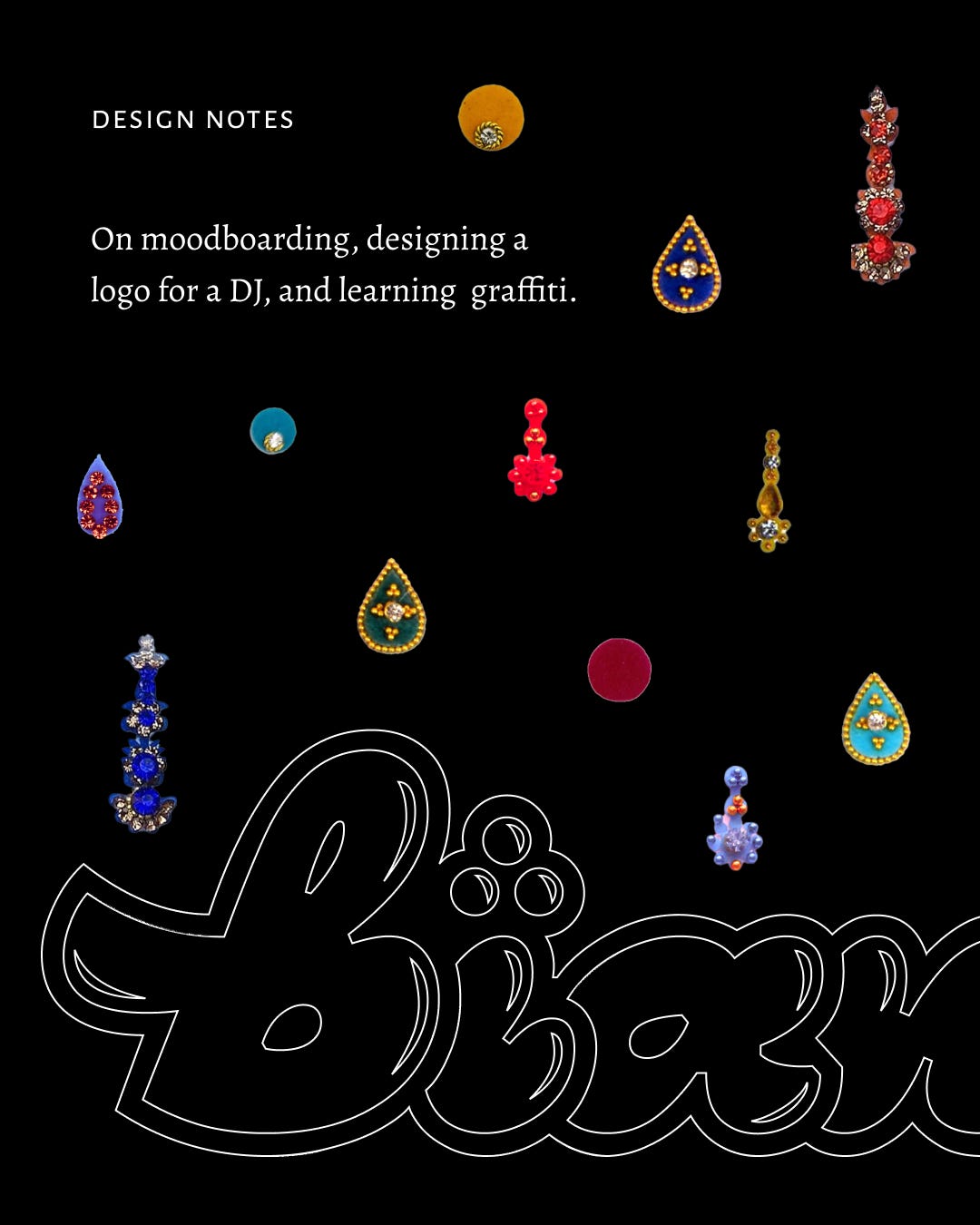 A zine-esque newsletter where I talk about my moodboarding process and designing Bianca's graffiti-inspired logo.